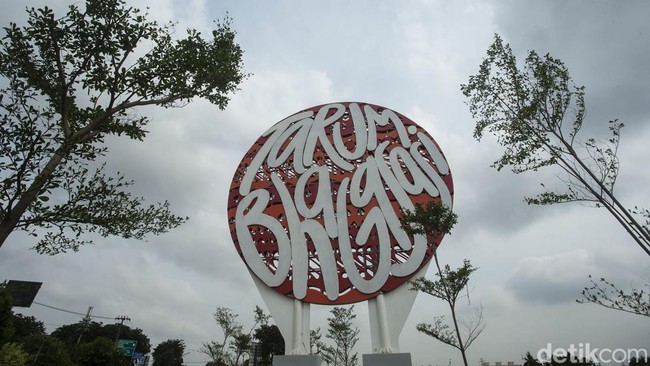 Plang bulat berukuran jumbo dengan tulisan Tarum Bhagasasi menandai titik awal sungai Kalimalang yang akan menjadi ikon baru wisata Bekasi. Beginilah penampakan terkini 'Sungai Cheonggyecheon Bekasi' yang sudah di depan mata dan tinggal menghitung hari.