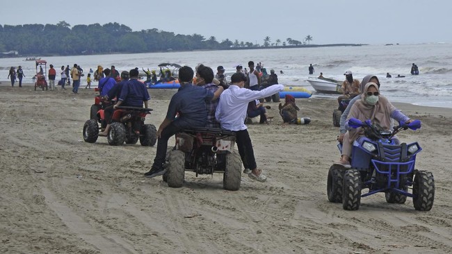 Pantai di Anyer Ramai Wisatawan Saat Banten PPKM Level 3