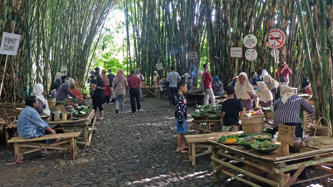 Temanggung - Setelah tutup selama dua tahun akibat COVID-19, wisata pendidikan dan kuliner pasar Papringan yang pembayarannya menggunakan uang bambu kembali dibuka.