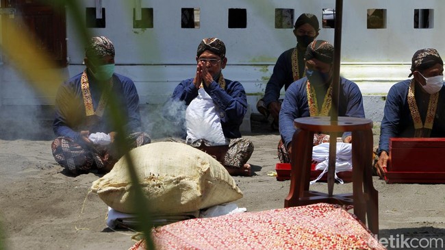 Yogyakarta - Kraton Ngayogyakarto Hadiningrat menggelar prosesi labuhan alit di Pantai Parangkusumo. Acara itu untuk memperingati bertahtanya Sri Sultan Hamengku Buwono X.