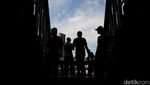 Jakarta - Sejumlah warga menyerbu JPO Pinisi yang belum lama diresmikan. Warga ramai-ramai berswafoto hingga menikmati suasana di atas JPO.