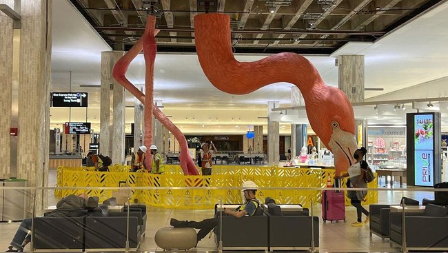 Potret Sosok Flamingo Raksasa di Bandara Tampa Florida