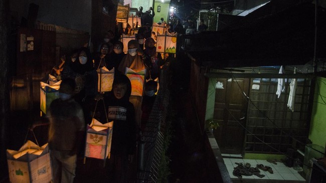 Bandung - Tradisi cahaya lampion dari kayu, damar kurung, digelar di Bandung. Tradisi ini merupakan warisan budaya di Indonesia yang berasal dari Gresik.