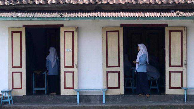 Sejumlah santriwati beraktivitas di rumah pendiri Nahdlatul Ulama (NU) KH Hasyim Asy'ari di kawasan Pondok Pesantren Kapurejo, Kediri, Jawa Timur, Kamis (7/4/2022).
