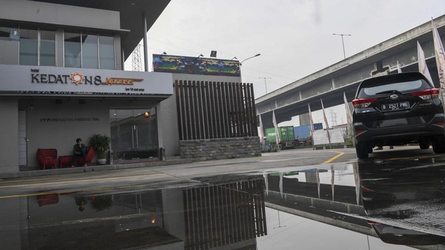 Suasana tampak depan sebuah hotel di Rest Area KM 19, Tambun, Kabupaten Bekasi, Jawa Barat, Selasa (26/4/2022).