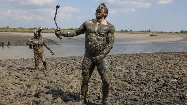 Inggris - Lomba Balap Lumpur Maldon kembali digelar di Inggris. Peserta menggunakan kostum unik saat mengikuti perlombaan untuk amal ini.