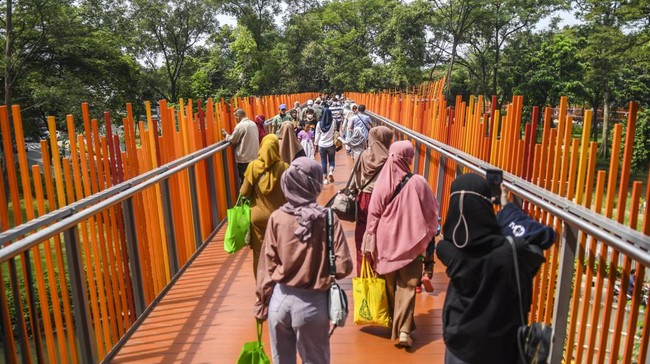 Jakarta - Tebet Eco Park, Jakarta Selatan, ramai dikunjungi warna pada H+2 Lebaran 2022. Pengunjung mayoritas berekreasi dengan keluarga.