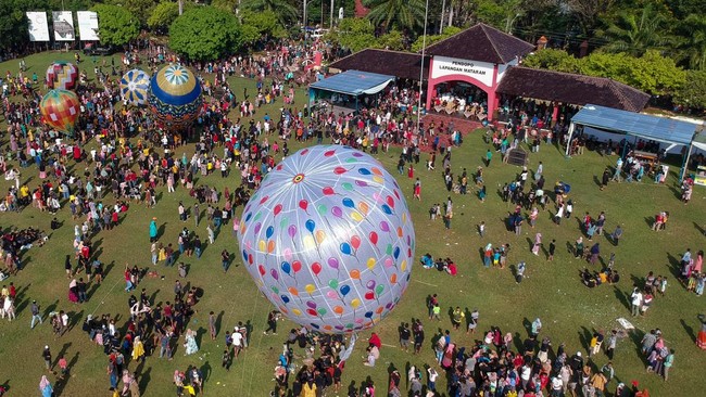 Libur Lebaran, Balon Udara Warna-warni Hiasi Lapangan di Pekalongan