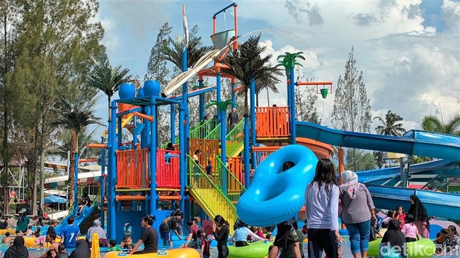 Garut - Sejumlah objek wisata di Garut ramai pengunjung di hari terakhir libur lebaran. Salah satunya adalah objek wisata Taman Air Sabda Alam, Cipanas, Tarogong Kaler.