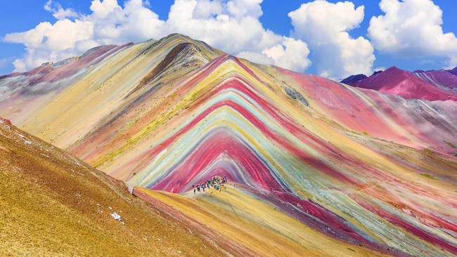 Cusco, Peru - Gunung berwarna-warni bak pelangi bisa traveler temui di Peru. Begitu cantik, tak heran jika tempat ini begitu populer di instagram.