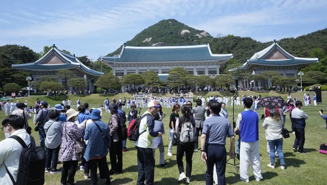 Setelah 74 tahun, Blue House diizinkan untuk dikunjungi ribuan orang. Langkah itu diinisiasi oleh Presiden Korea Selatan yang baru, Yoon Suk Yeol. (AP/Ahn Young-Joon)