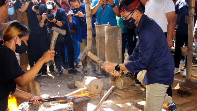 Momen Sandiaga Uno Ikut Tempa Keris di Desa Wisata Aeng Tongtong, Sumenep