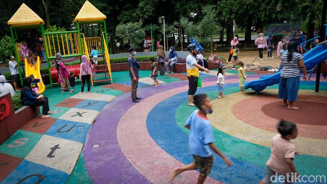 Tangerang Selatan - Taman Kota 1 BSD kembali dibuka usai ditutup karena wabah COVID-19. Kawasan itu pun ramai didatangi warga untuk mengisi waktu saat libur kenaikan Isa Almasih.