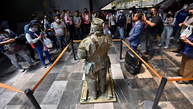 Meksiko - Seorang seniman asal Meksiko berdandan seperti patung. Dengan kostum tersebut ia jalan-jalan bahkan naik kereta, aksinya pun menjadi pusat perhatian.