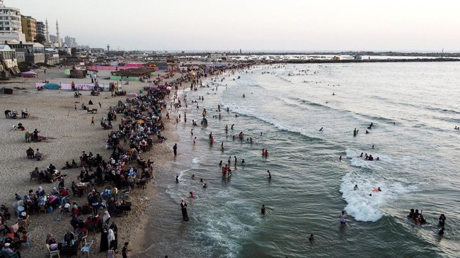 Potret Warga Gaza Menikmati Pantai Bersih yang Langka