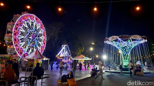 Warga ibu kota asyik menikmati cahaya warna-warni yang ada di pesta tahunan Pekan Raya Jakarta (PRJ) atau Jakarta Fair setelah vakum 2 tahun akibat pandemi.
