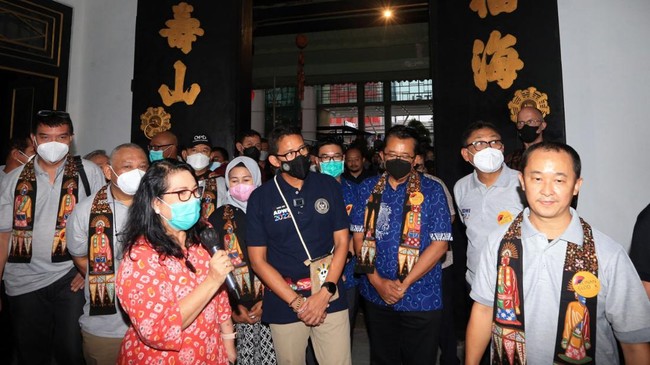 Jakarta - Sandiaga Uno mengunjungi Desa Wisata Pecinan Glodok, Minggu (26/6). Pecinan Glodok menjadi desa wisata yang masuk 50 besar Anugerah Desa Wisata Indonesia 2022.