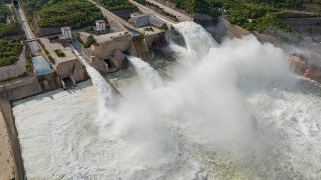 Hunan - Proses operasi pembersihan dan sedimen Waduk Xiaolangdi menghasilkan semburan air bah yang dahsyat. Momen tersebut kini jadi tontonan lho di China.