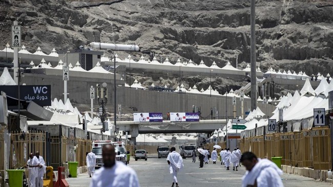 Makkah - Menjelang puncak ibadah haji yang ditandai dengan wukuf di Padang Arafah, Jumat, (8/7/2022), ribuan jemaah haji meninggalkan hotel. Menuju perkemahan di Mina.