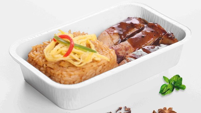 Lion Air kini menyediakan makanan bagi penumpang yang bisa dipesan sebelum terbang. Ada 4 menu yang ditawarkan. Yang pertama ada Nasi Goreng Telur Roasted Chicken. (dok. Lion Air)