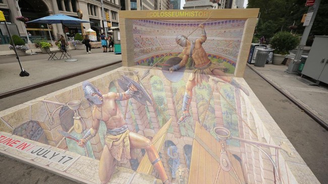 The History Channel memesan para seniman untuk membuat mural 3D di New York, sebagai bagian dari penayangan perdana serial 'Colosseum'.