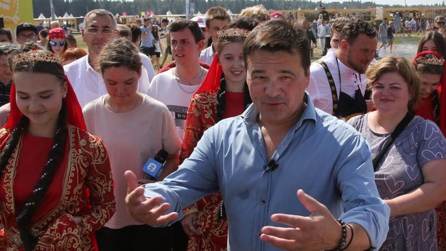 Gubernur Oblast Moskow Andrei Vorobyov datang dan menyambut para peserta Festival Gastronomi Dunia 2022 Pesta Keju pada Jum'at (5/8/2022), di Istra, Moskow, Rusia.