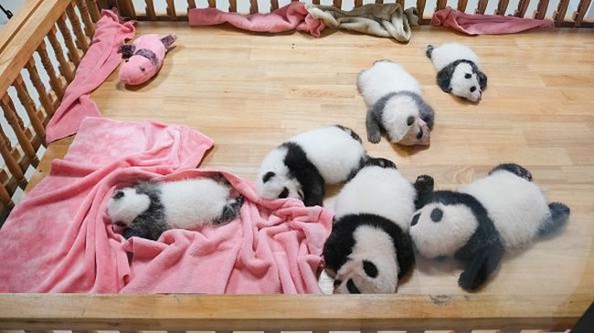 China - Pusat penangkaran panda terbesar di dunia yang ada di China memiliki banyak bayi panda yang menggemaskan. Bayi-bayi panda itu bak boneka.