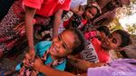 Anak-anak bermain ular naga di Sanggar Sandalwood, Kabupaten Timor Tengah Utara, Provinsi NTT saat dipotret pertengahan Agustus lalu. Di NTT, permainan ini dikenal dengan nama silom-silom. Β