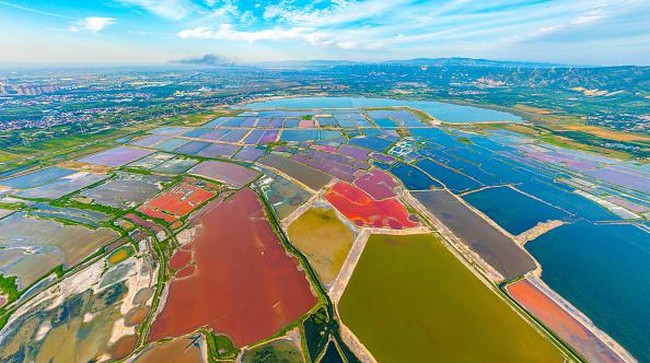 China - Danau Garam Yuncheng di China menjadi keajaiban alam karena pesonanya yang memukau. Saat musim panas, danau garam ini bisa berubah menjadi warna-warni.