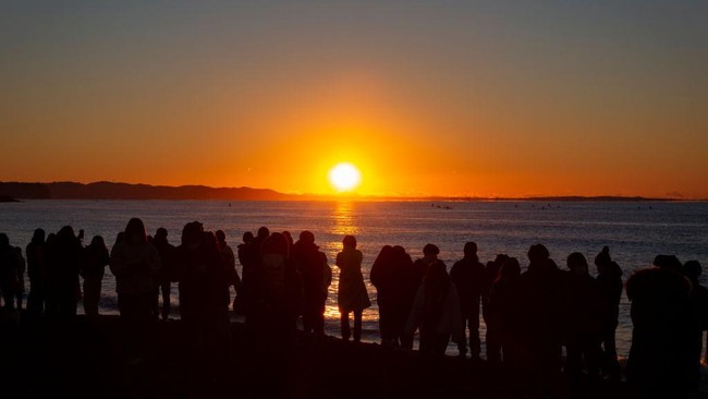 Pertama ada lanskap matahari terbit pada tahun baru 1 Januari 2022 lalu di Pantai Selatan Chigasaki. Sunrise ini disaksikan oleh sejumlah pengunjung. Indah banget.