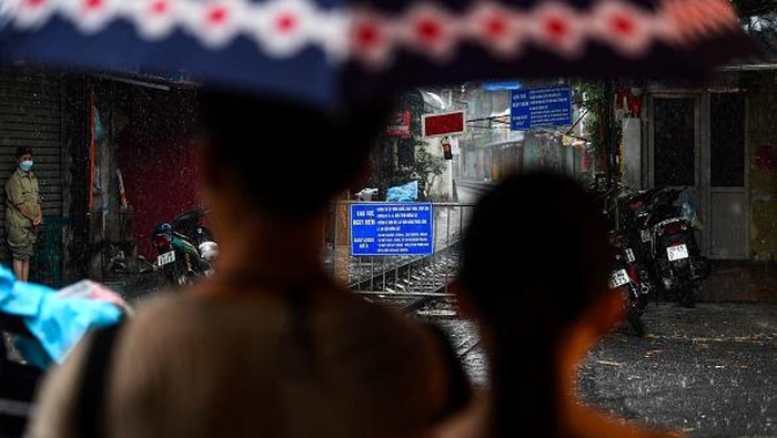 Seorang warga berjalan di jalur kereta api populer Hanoi yang telah ditutup di Hanoi, Vietnam, Jumat (16/9/2022) waktu setempat. (Nhac Nguyen/AFP/Getty Images) Β