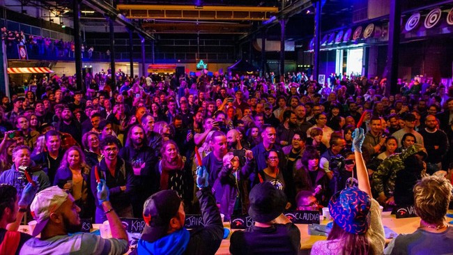 Ribuan pengunjung menyaksikan para peserta yang menangis dan berkeringat saat mengikuti lomba makan cabai terpedas di Eindhoven, Belanda, Minggu (18/9/2022).