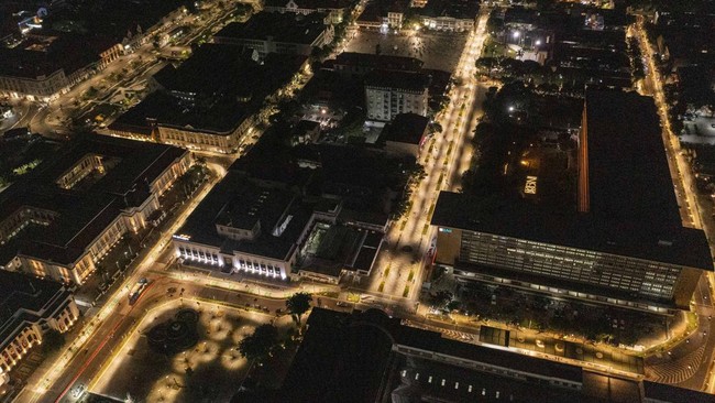 Jakarta - Keindahan Kota Tua usai direvitalisasi tidak hanya bisa dinikmati siang hari saja. Namun saat malam, Kota Tua makin mempesona apalagi jika dilihat dari udara.