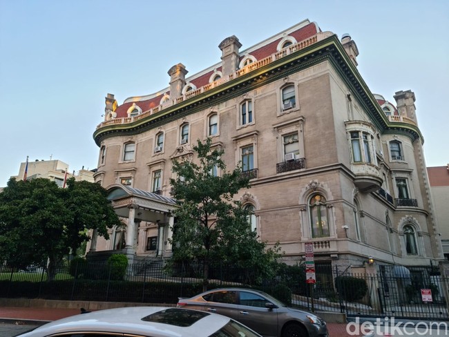 Gedung KBRI Washington, gedung bersejarah yang terletak berdekatan dengan kedubes negara lain di Washington. Foto: (Meliyanti/detikcom)