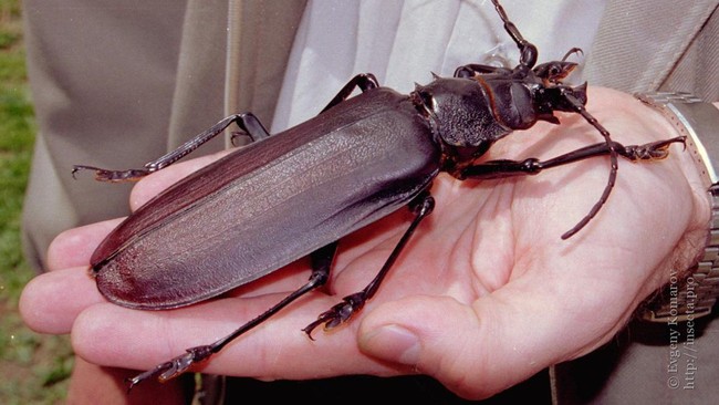 Kumbang tanduk panjang (Titanus giganteus) bisa tumbuh hingga 15 cm. Kumbang ini pun dapat dengan mudah mematahkan pensil dengan rahangnya lho. Habitat aslinya dapat ditemu di hutan hujan Bolivia, Brasil, Kolombia, Ekuador hingga Peru. Dok. applepeastcontrol.com