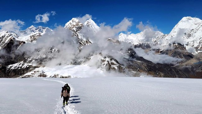 Potret Dinginnya Salju Himalaya Kala Pendaki Indonesia Tiba di Puncak Mera Peak