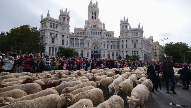 Madrid - Festival Transhumance adalah sebuah acara tradisional. Lebih dari 1.000 domba penuhi pusat kota Madrid, Spanyol untuk memeriahkan acara ini.