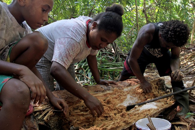 Papua - Warga Papua menggelar festival ulat sagu di kampung Yoboi. Festival tersebut bertujuan untuk memanfaatkan ulat sagu sebagai bahan pangan.
