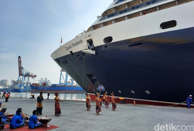 Jakarta - Kapal pesiar Queen Elizabeth bersandar di Pelabuhan Tanjung Priok, Jakarta dan Tanjung Benoa, Bali. Mewah banget.