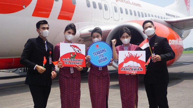 Potret Pramugari Lion Air Rayakan Hari Pahlawan di Atas Ketinggian