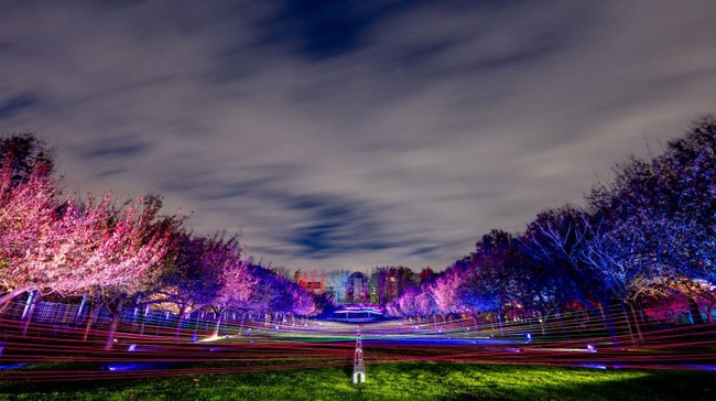 New York - Taman Botani Brooklyn, New York, Amerika Serikat, tampil dengan instalasi tata cahaya warna-warni yang memukau. Penasaran?
