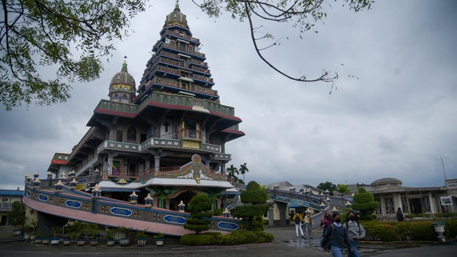 Medan - Gereja Katolik Graha Maria Annai Velangkanni memiliki gaya arsitektur Kuil India. Bentuknya yang unik menjadikan gereja ini tempat ziarah populer di Medan.