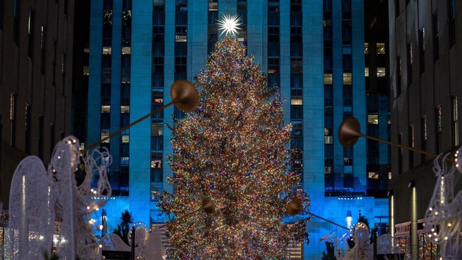 Pohon Natal menghiasi Rockefeller Center, Manhattan, New York. Pohon Natal itu berhias lampu warna-warni. Reuters/Jeenah Moon.