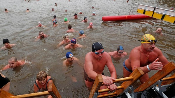 Brr.. Lomba Renang Musim Dingin di Praha Bikin Badan Mengigil