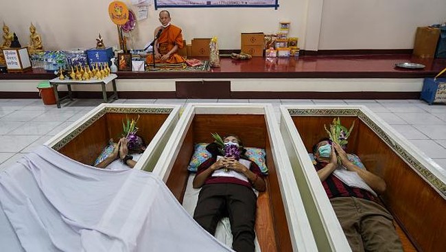 Thailand - Warga Thailand punya tradisi unik saat merayakan tahun baru yakni dengan berbaring di peti mati. Ada makna mendalam di balik tradisi tersebut. Penasaran?