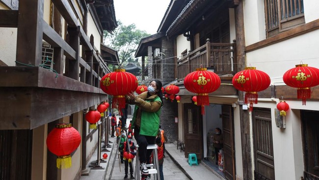 Sambut Imlek, Rumah-rumah di China Mulai Dipasang Lampion