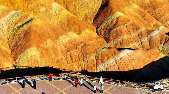 Zhangye - Gunung merupakan salah satu wisata yang mempunyai pemandangan begitu indah. Salah satunya gunung pelangi yang ada di Zhangye, China.