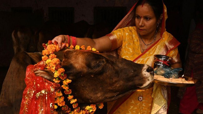 Selain dianggap sebagai hewan suci, Sapi juga merupakan simbol bumi dan dewa. Dewan Kesejahteraan Hewan India juga menyebut sapi sebagai tulang punggung budaya India dan ekonomi pedesaan. Getty Images/NARINDER NANU