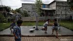 Anak-anak bermain di area ruang terbuka hijau Taman Ondel-ondel, Semper Barat, Cilincing, Jakarta Utara, Jumat (17/2/2023). Taman ini dibangun pada tahun 2022 dan rampung pada Januari 2023.