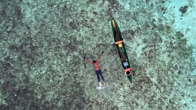 "Ayooo", ujar Taha berteriak lantang. Dengan bertelanjang dada sambil mengangkat senjatanya Taha meluncur dengan sampan kecilnya, mengarungi perairan pesisir Pulau Wangi-Wangi Kabupaten Wakatobi menuju ke arah tubir laut.